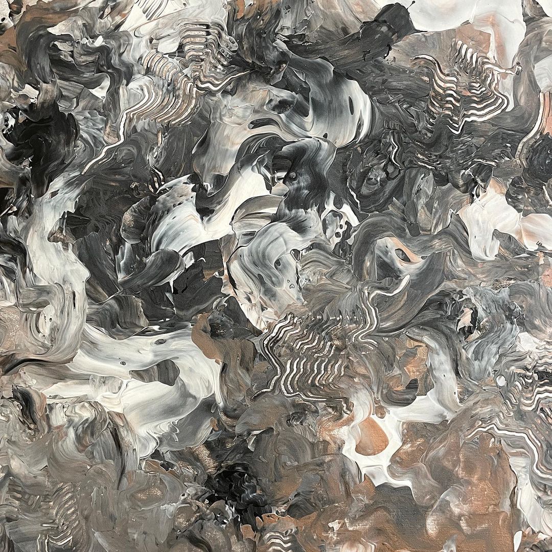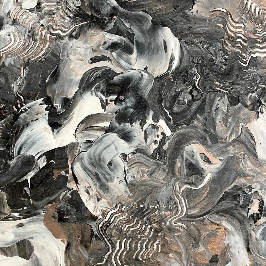 Modeling paste mixed with acrylic paint on canvas